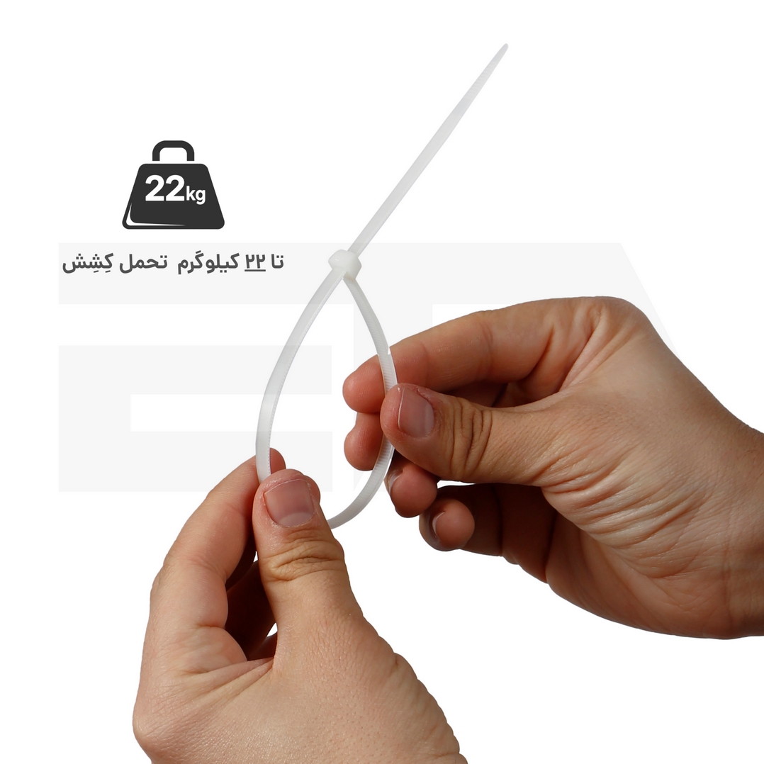 این بست کمربندی توان تحمل تا 22 کیلوگرم کشش را دارد و برای بستن کابل‌های سنگین، تجهیزات تأسیساتی و کاربردهای صنعتی کاملاً مناسب است.